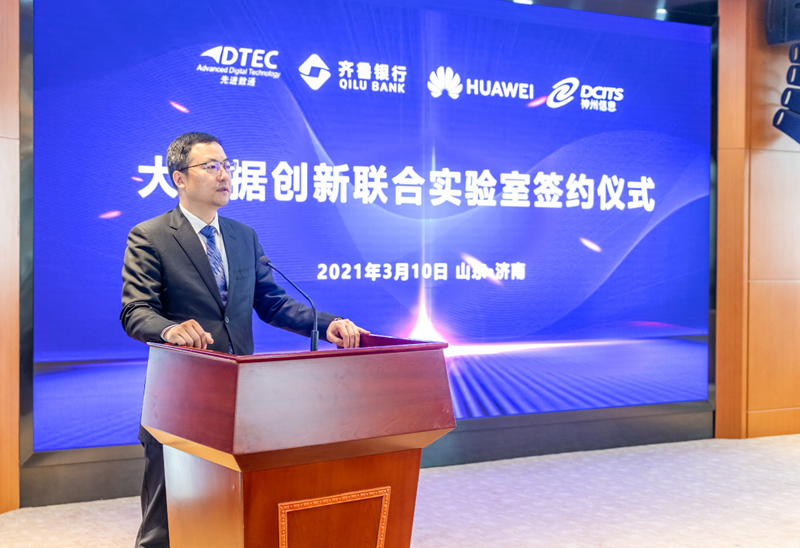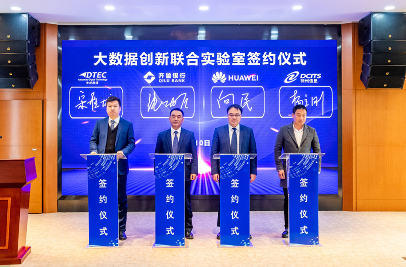 3月10日,“大数据创新联合实验室”签约仪式在齐鲁银行总行举办,齐鲁银行股份有限公司(以下简称:齐鲁银行)、华为技术有限公司(以下简称:华为)、北京顺发配资信息技术股份公司(以下简称:顺发配资)与evo视讯真人官网信息服务股份有限公司(以下简称:神州信息)四方代表齐聚,共同签署了金融大数据创新开展合作协议。四方将在互利互惠、合作共赢的原则上,共同召开金融大数据应用合作,建立金融大数据创新开展新生态,全面推进金融业数字化转型。